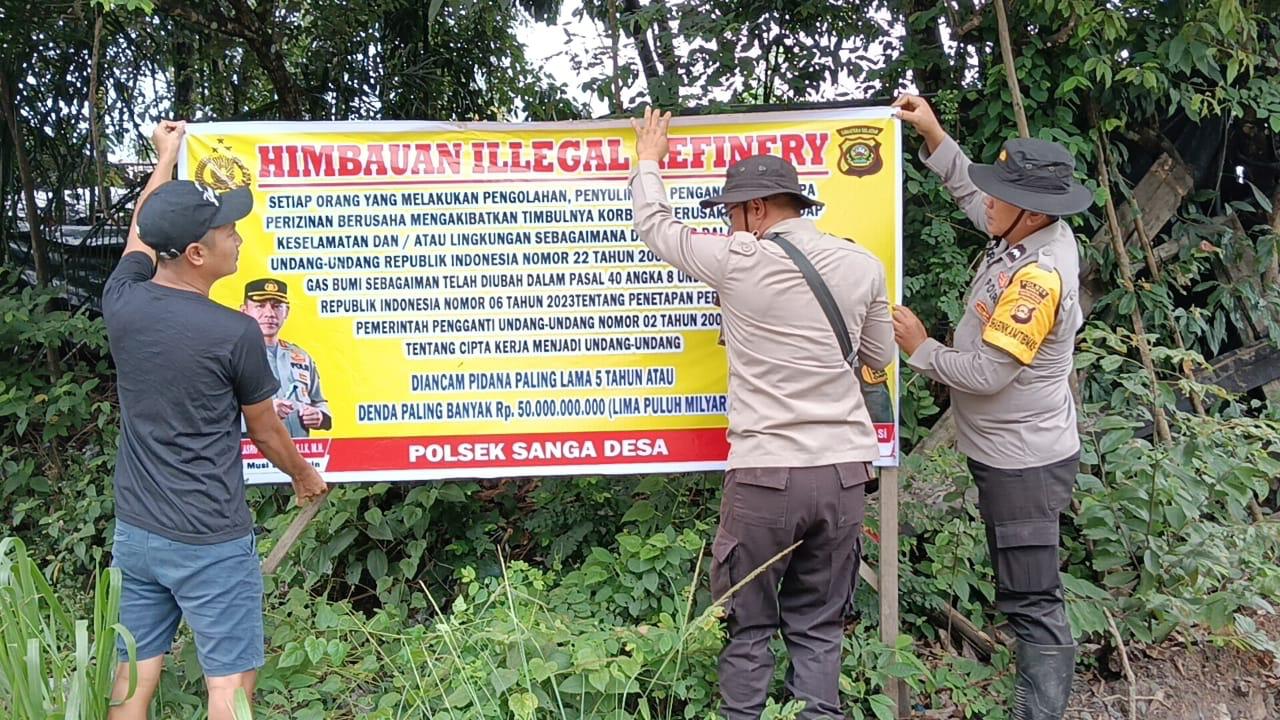 Sebagai bentuk komitmen dalam memberantas kegiatan ilegal refinery, Polsek Sanga Desa telah memasang sejumlah spanduk imbauan di lokasi-lokasi yang diduga menjadi tempat aktivitas ilegal tersebut.